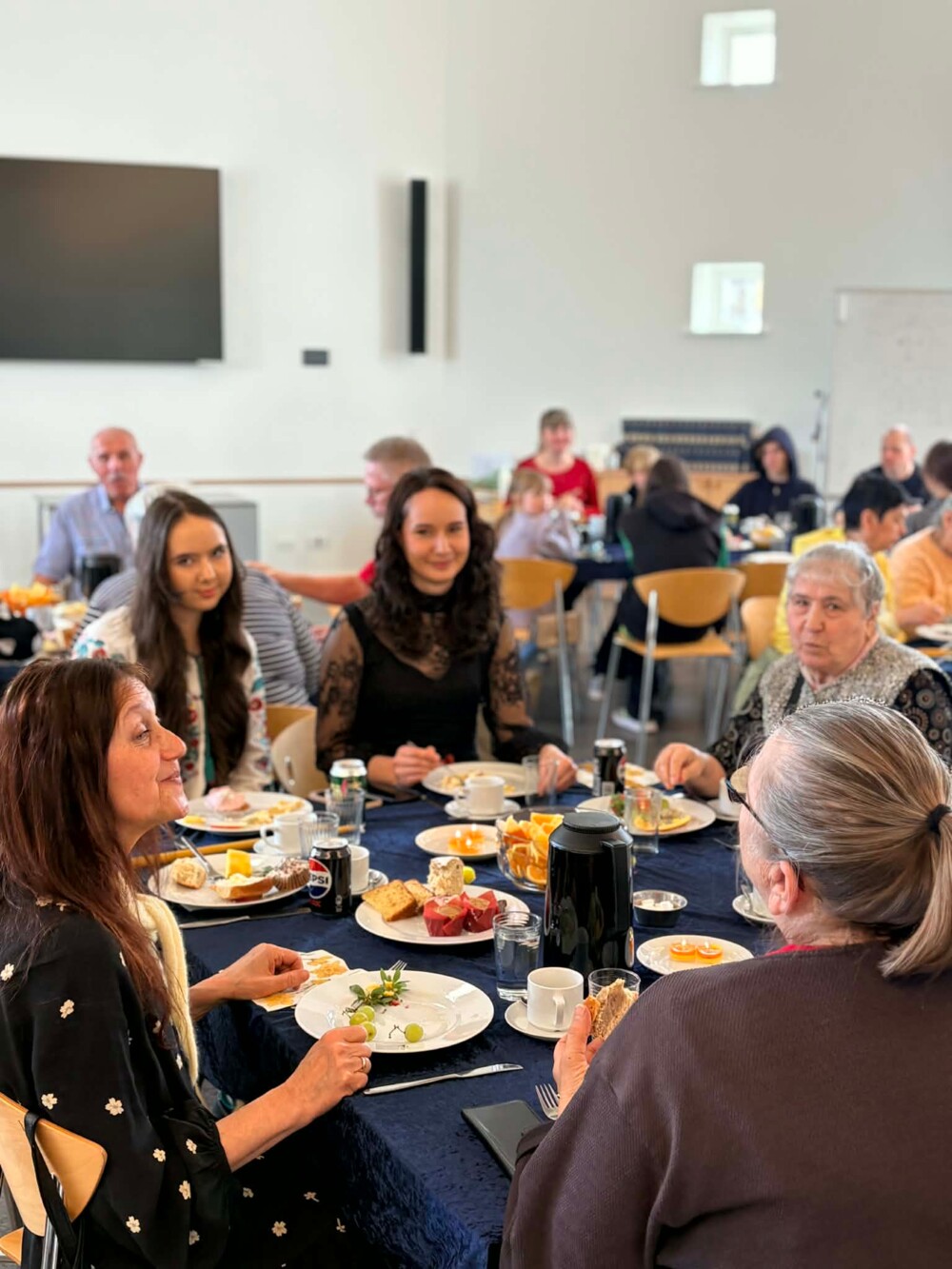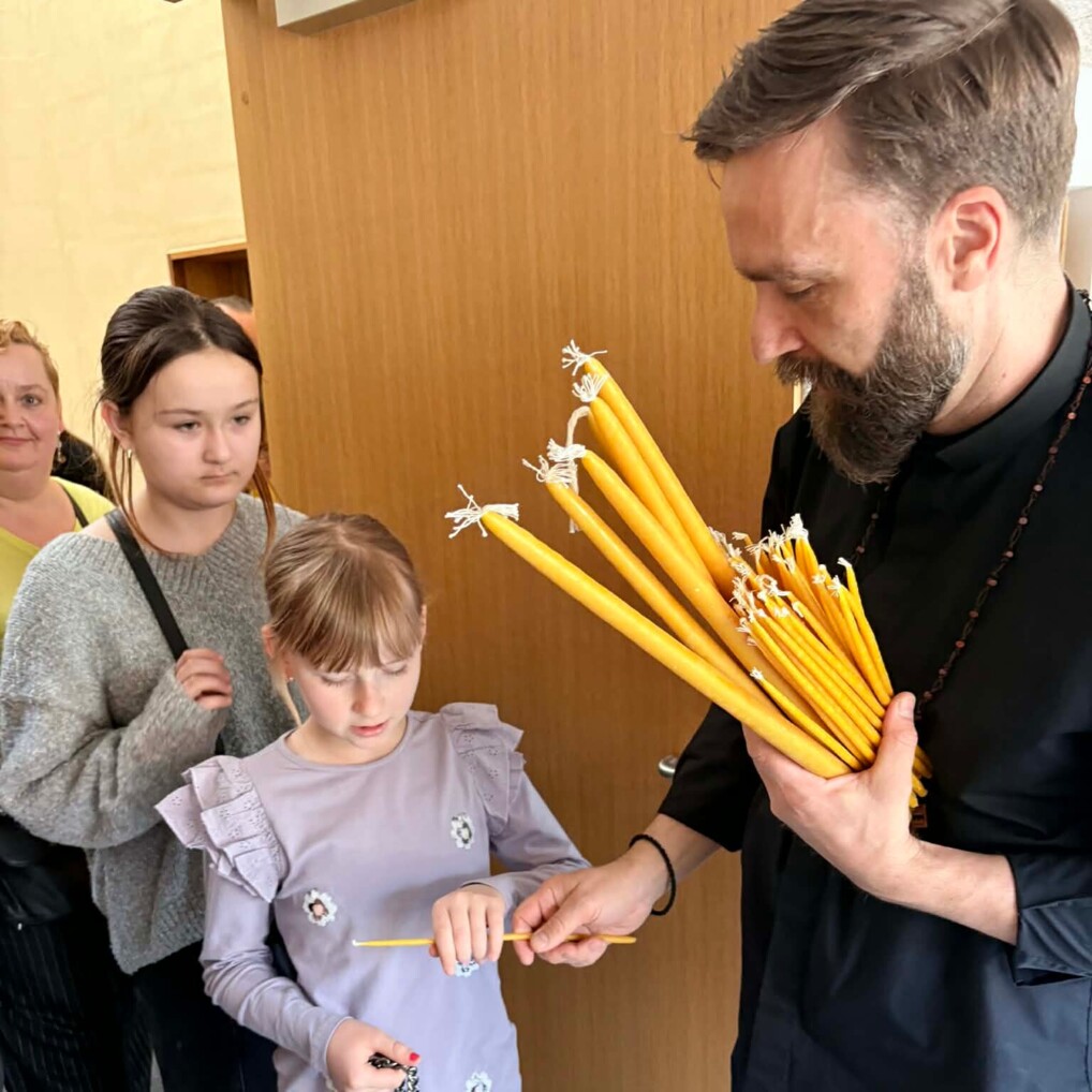 Jeg havde købt gule vokslys ind til alle dem der deltog, fordi jeg ved, at det at kunne tænde er lys påskedag for ukrainere har stor betydning ligesom for mange andre, der kommer fra en ortodoks tradition. Alle fik således et lys med hjem, inden vi gik ind og spiste ukrainernes medbragte påskekager, madbrød og drak kaffe og te i det tilstødende lokale. Det blev til mange gode snakke under det hyggelige samvær bl.a. om familier i Ukraine, hvordan krigen opleves, og hvordan vi som folkekirke kan hjælpe ukrainerne med at finde håb og styrke i den kristne tro.