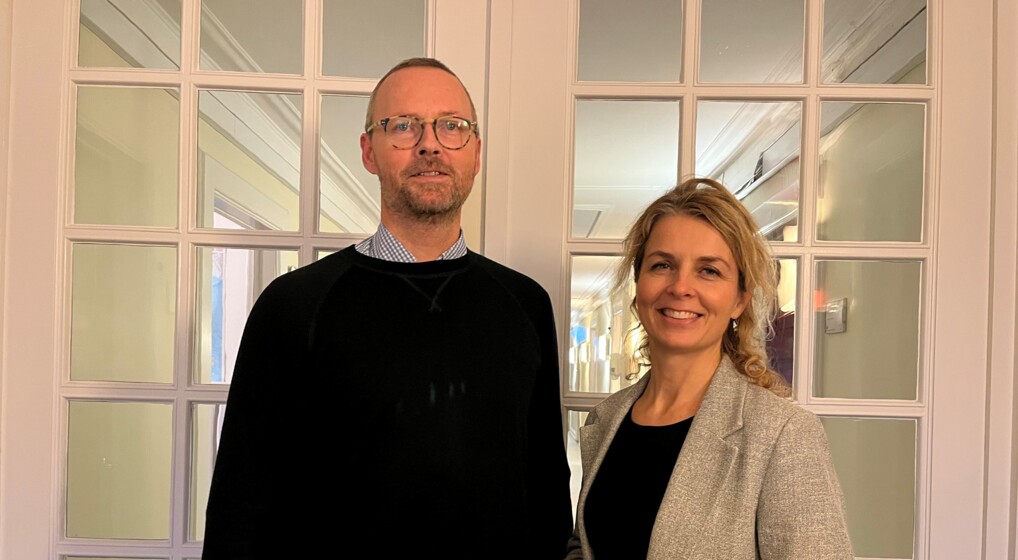 Akademisk sekretær i MKR Jonas Adelin Jørgensen sammen med sekretariatschef Katja Gunnertoft fra CKU, der har bevilget pengene. FOTO: MKR.